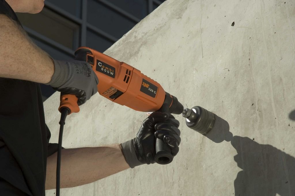 Даже крепкие, победитовые свёрла не могут ускорить этот процесс, при этом они сильно нагреваются и, как результат, портятся. Поэтому закономерно использовать инструменты, которые предназначены для создания отверстий при помощи ударов.